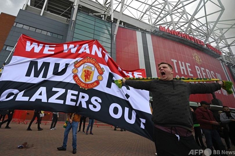 ユナイテッドでは、欧州スーパーリーグ構想に賛同した経営陣に対してファンの怒りが再燃している。4月に発表されたスーパーリーグ構想は、ファンや選手、政府、統括団体の猛反発に遭い、わずか48時間で事実上の崩壊に追い込まれた。(c)AFP