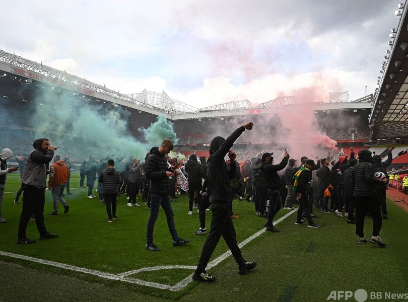 ファンはリバプール戦が行われる予定だった本拠地オールド・トラフォード(Old Trafford)へ大挙して侵入し、「グレーザー(Glazer)家の退陣を望む」とオーナー一家に抗議した。スタジアムの外にも多数のサポーターが集まり、解散させようとする警察との間で衝突が起こった。