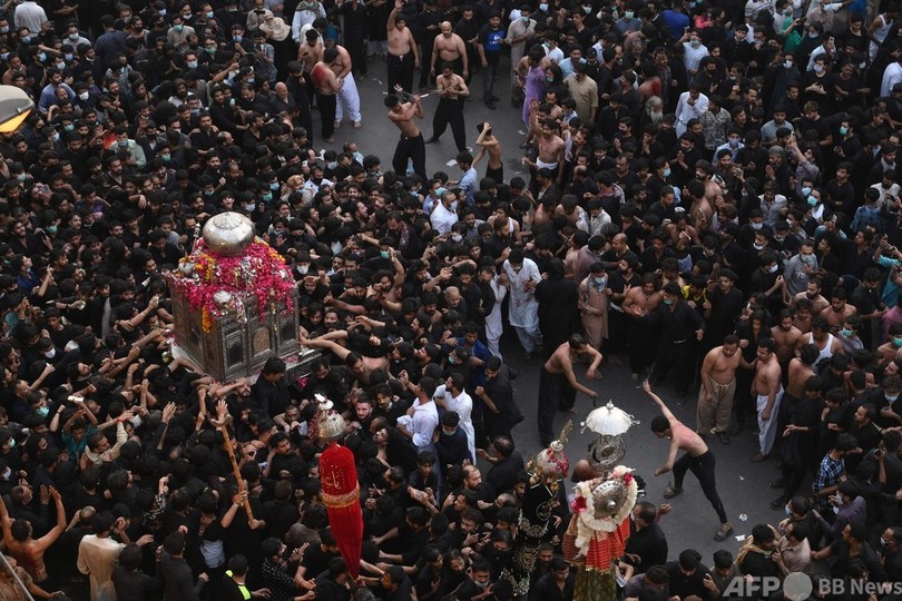 【5月4日 AFP】パキスタン東部ラホール(Lahore)で4日、イスラム教シーア派(Shiite)の行事があり、当局の推計で8000~1万人が参加した。密集して行進する参加者の多くがマスクを着けていなかった。隣国インドで、同様の祭りが感染爆発の要因になったとみられていることから、パキスタンでも感染拡大を懸念する声が上がっている。