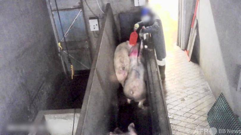 ニュース 社会 豚肉処理場での「虐待」映像、仏動物愛護団体が公開 2021年5月5日 23:28 発信地:ブレスト/フランス [ フランス ヨーロッパ ] このニュースをシェア ‹ › ❮ 5/11 ❯ 仏ブルターニュ地方ブリエックの豚肉処理場。動物愛護団体L214提供の動画より(2021年5月4日公開)。(c)AFP PHOTO / L214 画像作成中 ! 【5月5日 AFP】フランスの動物愛護団体「L214」は4日、スーパー大手が所有する豚肉処理場の映像を公開し、動物虐待が行われているとして、全国規模での監査強化を訴えた。 映像が撮影されたのは、ブルターニュ(Brittany)地方ブリエック(Briec)にある豚肉処理場。豚に電気ショックを与えたり、移動させるために蹴ったりする様子が捉えられている。 同団体は農相に対し、国内の全ての食肉処理場の監査を求めている。(c)AFP 社会 一覧へ> メディア・報道関係・法人の方向け 写真・動画 購入のお問合せ>