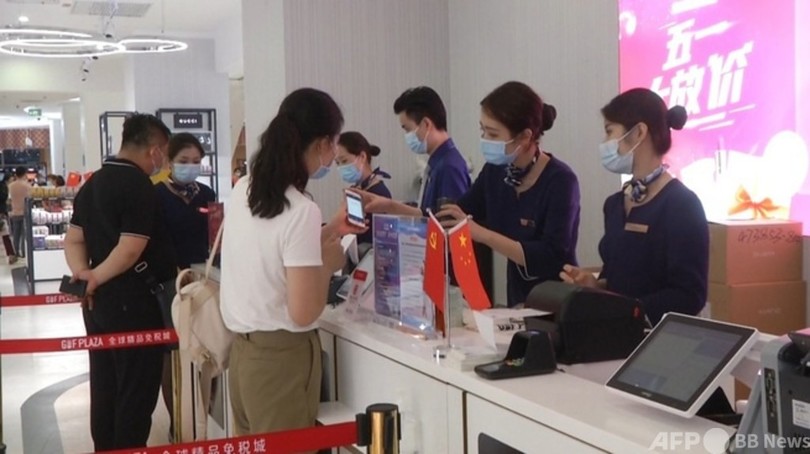 昨年7月に海南省(Hainan)で離島免税の新措置が正式に施行され、離島免税ショッピングの限度額は3万元から10万元(約169万円)に引き上げられました。今年2月から、島外の客への商品郵送サービスや、島内の住民に買った商品の預かりサービスを提供することになり、これによって海南省の離島免税消費がさらに刺激されています。(c)CGTN Japanese/AFPBB News