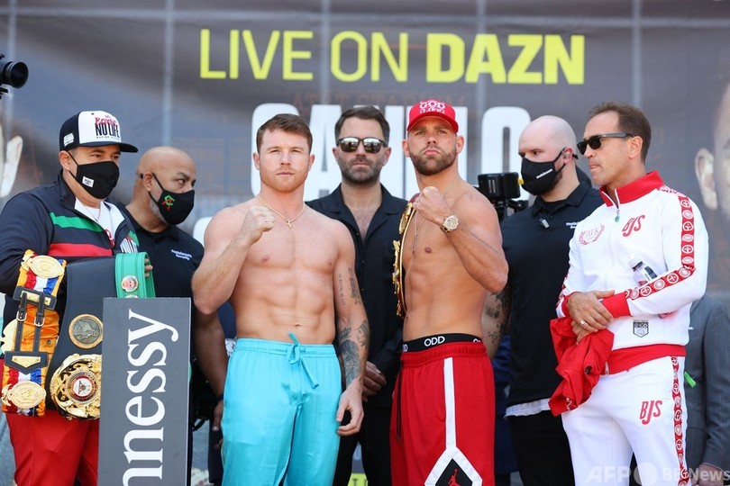 【5月8日 AFP】ボクシング、世界スーパーミドル級王座統一戦で対戦するサウル・アルバレス(Saul Alvarez、メキシコ)とビリー・ジョー・ソーンダース(Billy Joe Saunders、英国)は7日、テキサス州アーリントン(Arlington)のAT&Tスタジアム(AT&T Stadium)で前日計量に臨み、いずれも問題なくパスした。