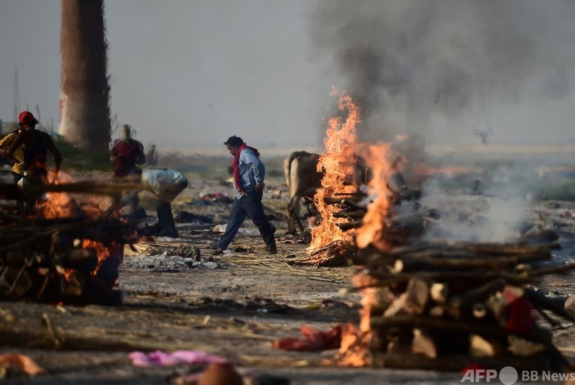 インド内陸部の広大な農村地帯では、新型コロナウイルスの感染が急速に拡大しており、医療施設のみならず火葬場や墓地も逼迫(ひっぱく)している。