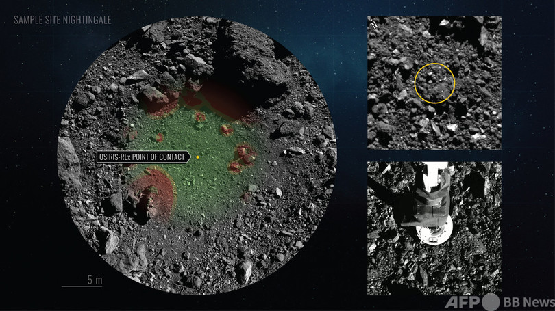 ベンヌのサンプルの分析により、太陽系の形成や居住可能な惑星としての地球の進化について理解が深まることが期待される。(c)AFP