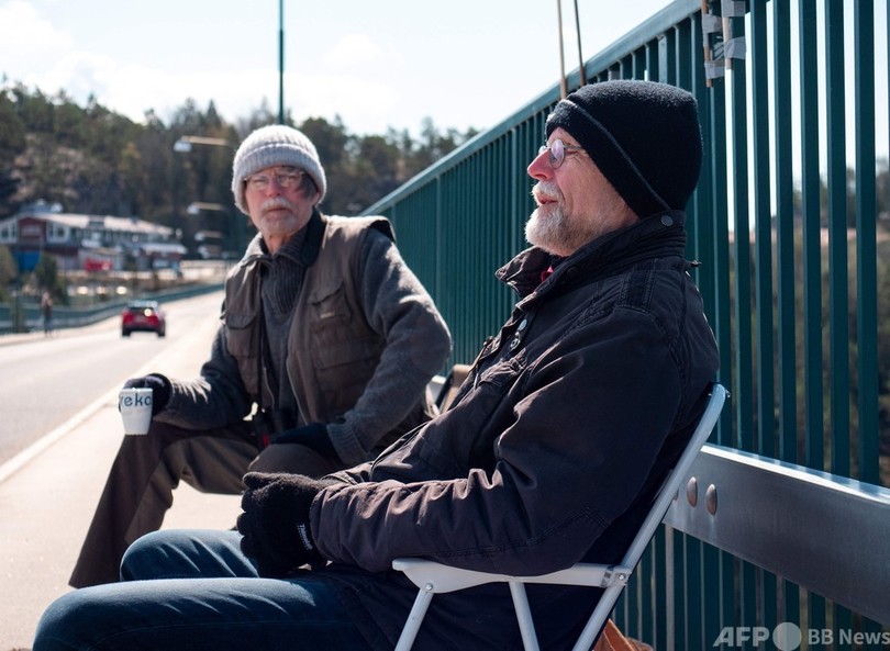 【5月16日 AFP】73歳の双子の兄弟オラさんとポントゥスさんは、新型コロナウイルスの流行により互いの家を訪れることができなくなってしまった。2人が毎週土曜日に、ノルウェーとスウェーデンの国境を隔てる橋の上で顔を合わせるようになって、もう1年以上になる。