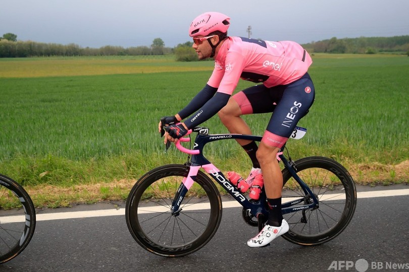 総合争いで本命視されているチーム・バイクエクスチェンジ(Team BikeExchange)のサイモン・イェーツ(Simon Yates、英国)とイネオス・グレナディアーズのエガン・ベルナル(Egan Bernal、コロンビア)は、難なく2位集団でフィニッシュしている。(c)AFP