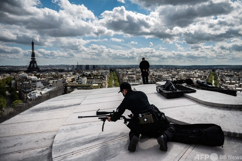 【5月11日 AFP】フランスでは先週、第2次世界大戦(World War II)の戦勝記念日にあわせて記念式典が開催された。パリでは8日、フランス国家警察捜査介入部のスナイパーが、凱旋(がいせん)門(Arc de Triomphe)周辺の警備に当たった。(c)AFP