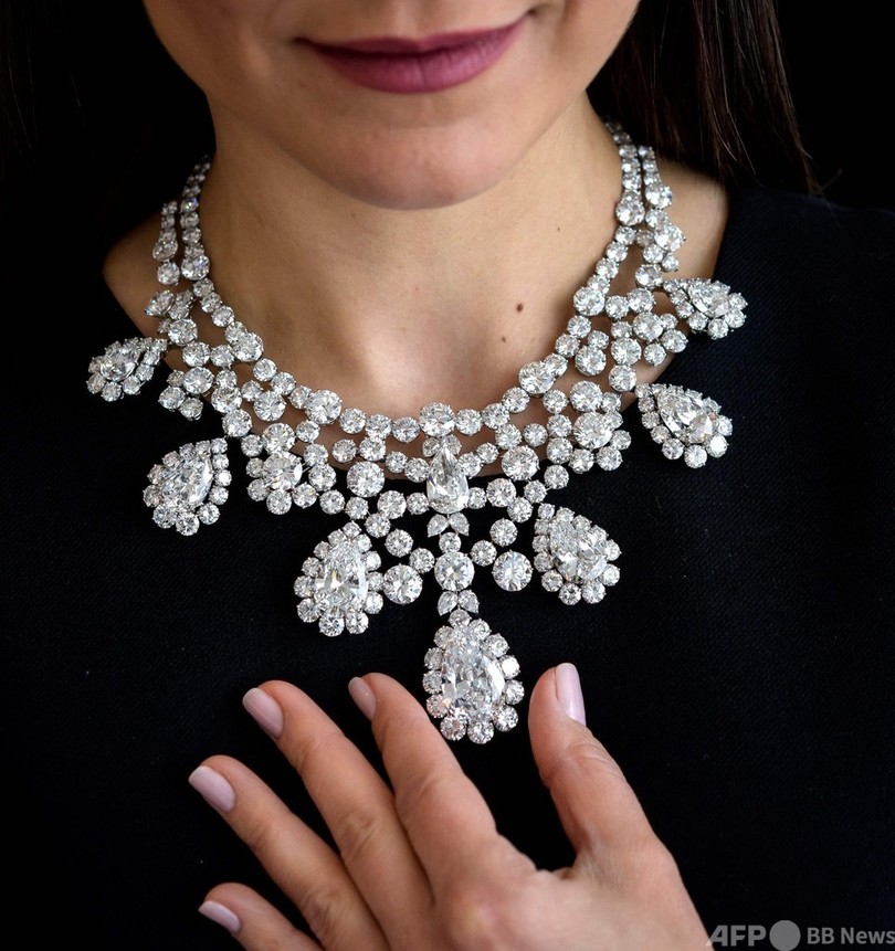 一方、オークション史上最大級となった55.19カラットのカシミールサファイアは、ビール醸造事業で成功を収めたギネス家のモーリーン・コンスタンス・ギネス(Maureen Constance Guinness)夫人がかつて所有していたもので、英国の宝石商ローレンス・グラフ(Laurence Graff)氏が落札した。