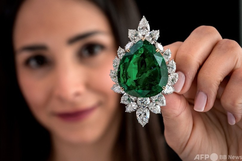 一方、オークション史上最大級となった55.19カラットのカシミールサファイアは、ビール醸造事業で成功を収めたギネス家のモーリーン・コンスタンス・ギネス(Maureen Constance Guinness)夫人がかつて所有していたもので、英国の宝石商ローレンス・グラフ(Laurence Graff)氏が落札した。