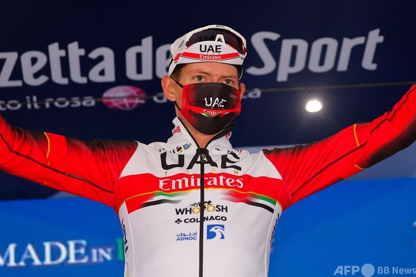 一方のデマルキは前日までトップに立っていたイネオス・グレナディアーズ(Ineos Grenadiers)のフィリッポ・ガンナ(Filippo Ganna、イタリア)を抜き、5回目のジロで34歳にして初めて総合首位のマリアローザ(ピンクジャージー)をまとうことになった。ドンブロウスキーが22秒差の総合2位につけている。(c)AFP
