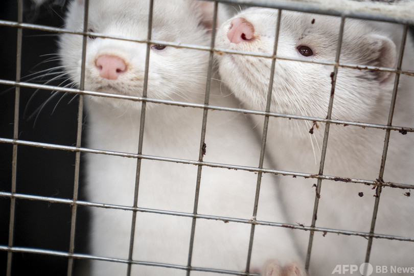 ミンクは動物で唯一、新型ウイルス変異株に感染し、人にも感染させることが確認されている。(c)AFP