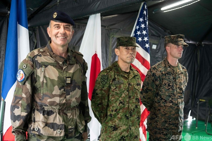 ニュース 政治・経済 日仏米共同訓練、報道陣に公開 2021年5月15日 19:45 発信地:宮崎 [ 日本 アジア・オセアニア フランス ヨーロッパ 米国 北米 ] このニュースをシェア ‹ › ❮ 23/24 ❯ 記者会見を行う(左から)仏陸軍のアンリ・マルカイユ中佐、自衛隊の開雅史・第1水陸機動連隊長、米海兵隊のジェレミー・ネルソン中佐。宮崎県と鹿児島県にまたがる霧島演習場にて(2021年5月15日撮影)。(c)Charly TRIBALLEAU / POOL / AFP 画像作成中 ! 【5月15日 AFP】宮崎県えびの市と鹿児島県湧水町にまたがる霧島演習場で15日、陸上自衛隊と米海兵隊、仏陸軍による共同訓練が報道陣に公開された。(c)AFP 政治・経済 一覧へ> メディア・報道関係・法人の方向け 写真・動画 購入のお問合せ>