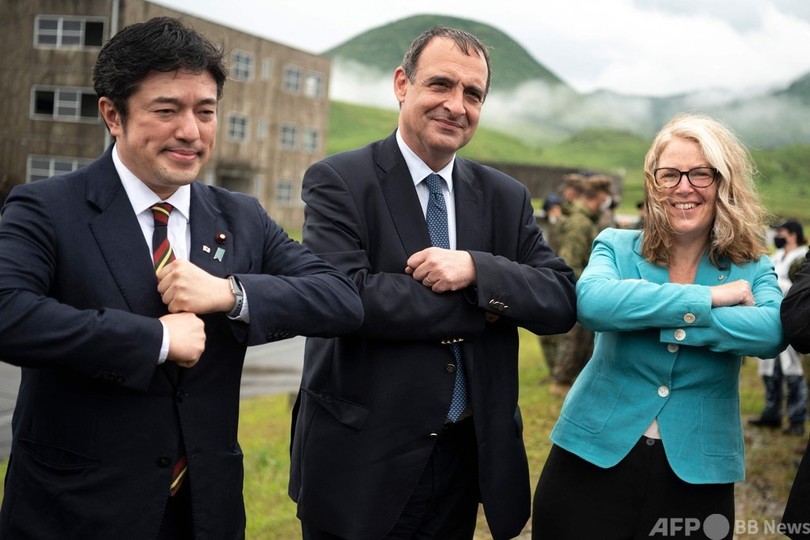ニュース 政治・経済 日仏米共同訓練、報道陣に公開 2021年5月15日 19:45 発信地:宮崎 [ 日本 アジア・オセアニア フランス ヨーロッパ 米国 北米 ] このニュースをシェア ‹ › ❮ 5/24 ❯ 日仏米の共同訓練が行われた宮崎県と鹿児島県にまたがる霧島演習場に姿を見せた(左から)中山泰秀防衛副大臣、フィリップ・セトン駐日フランス大使、ジャン・アダムズ駐日オーストラリア大使(2021年5月15日撮影)。(c)Charly TRIBALLEAU / POOL / AFP 画像作成中 ! 【5月15日 AFP】宮崎県えびの市と鹿児島県湧水町にまたがる霧島演習場で15日、陸上自衛隊と米海兵隊、仏陸軍による共同訓練が報道陣に公開された。(c)AFP 政治・経済 一覧へ> メディア・報道関係・法人の方向け 写真・動画 購入のお問合せ>