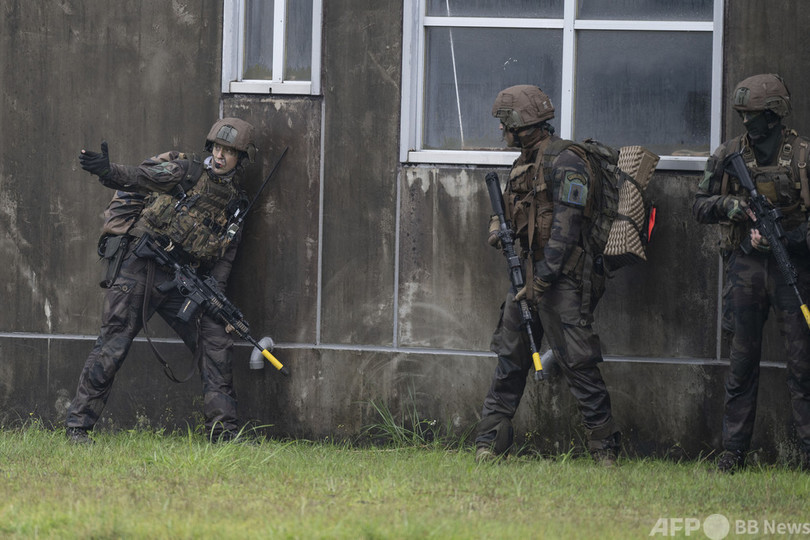 ニュース 政治・経済 日仏米共同訓練、報道陣に公開 2021年5月15日 19:45 発信地:宮崎 [ 日本 アジア・オセアニア フランス ヨーロッパ 米国 北米 ] このニュースをシェア ‹ › ❮ 13/24 ❯ 宮崎県と鹿児島県にまたがる霧島演習場で行われた日米仏の共同訓練(2021年5月15日撮影)。(c)Charly TRIBALLEAU / POOL / AFP 画像作成中 ! 【5月15日 AFP】宮崎県えびの市と鹿児島県湧水町にまたがる霧島演習場で15日、陸上自衛隊と米海兵隊、仏陸軍による共同訓練が報道陣に公開された。(c)AFP 政治・経済 一覧へ> メディア・報道関係・法人の方向け 写真・動画 購入のお問合せ>