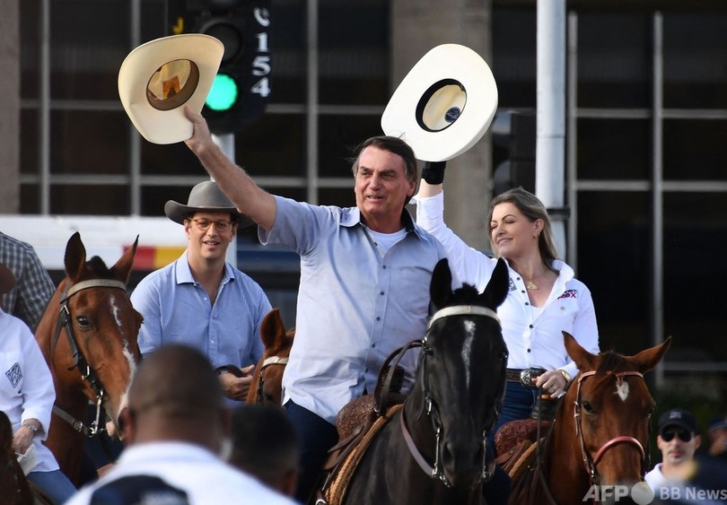 【5月16日 AFP】新型コロナウイルス対策で厳しい批判にさらされ、支持率が低下しているブラジルのジャイル・ボルソナロ(Jair Bolsonaro)大統領が15日、新型コロナ対策の中止を訴えるデモに参加した。ボルソナロ氏は会場上空を飛ぶヘリコプターから手を振り、馬に乗って登場。首都ブラジリアの官庁街(Esplanade of Ministries)に集まった数万人の聴衆を沸かせた。