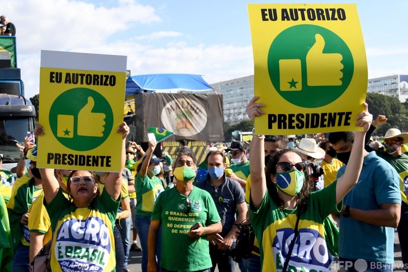 農民やトラック運転手らに謝意を表したボルソナロ氏は、感染封じ込め対策を講じた「一部の州知事や市長」を攻撃した。
