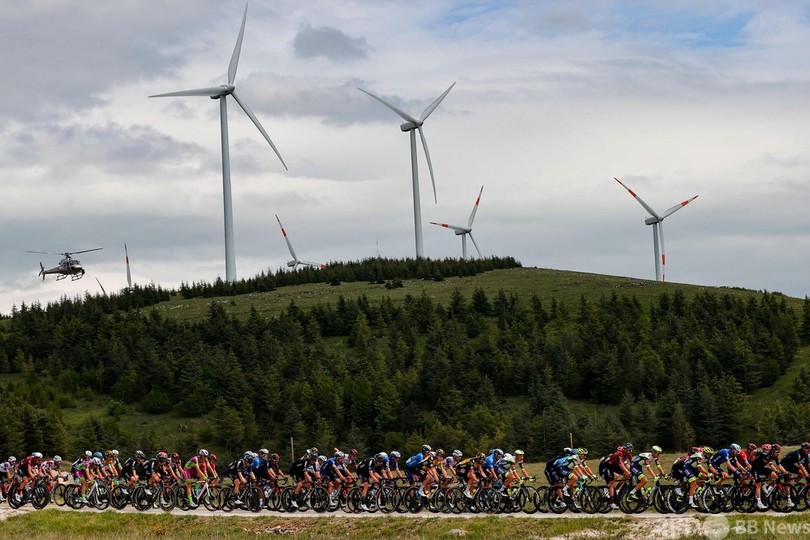 チーム・バイクエクスチェンジ(Team BikeExchange)のサイモン・イェーツ(Simon Yates、英国)も同じく12秒差で、総合首位から少し離されたが、大会はまだ厳しいステージが12個も残っている。(c)AFP