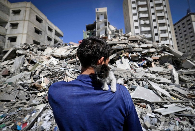【5月20日 AFP】イスラエルの空爆が続くパレスチナ自治区ガザ地区(Gaza Strip)。18日、がれきと化したガザ地区の通りには、子猫を抱く一人の男性の姿があった。猫を保護して世話をするアハメド・モサベ(Ahmed Mosabeh)さん(28)だ。障害があり、特別な支援を必要とするモサべさんは、空爆の被害から逃れるため、保護猫と一緒に安全な場所に避難している。