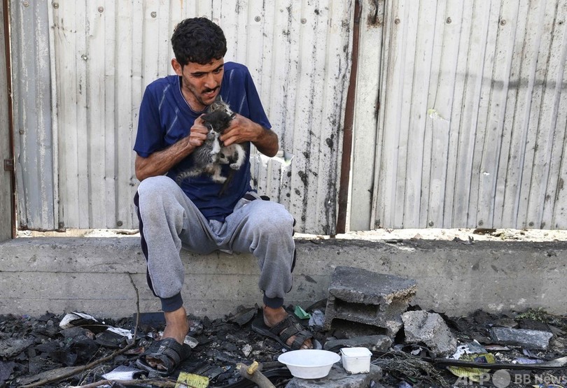 【5月20日 AFP】イスラエルの空爆が続くパレスチナ自治区ガザ地区(Gaza Strip)。18日、がれきと化したガザ地区の通りには、子猫を抱く一人の男性の姿があった。猫を保護して世話をするアハメド・モサベ(Ahmed Mosabeh)さん(28)だ。障害があり、特別な支援を必要とするモサべさんは、空爆の被害から逃れるため、保護猫と一緒に安全な場所に避難している。