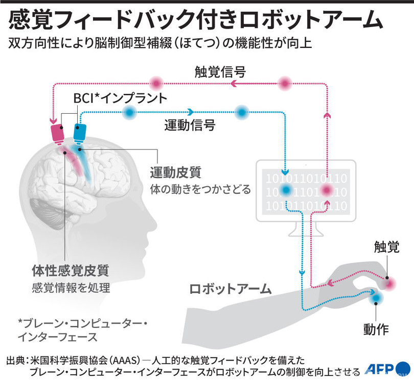 【5月21日 AFP】脳の活動だけでロボットアームを遠隔操作し、その指が物体をつかんだ感触を自分自身の手で触れたのと同じように感じられるとしたら──?