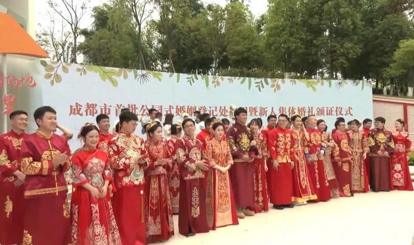 ニュース ライフ From China CGTN Japanese 四川省成都で公園内に婚姻届対応窓口を設置 2021年5月21日 23:09 発信地:中国 [ 中国 中国・台湾 ] このニュースをシェア 「結婚証明書」をもらうカップルたち(2021年5月21日提供)。(c)CGTN Japanese 【5月21日 CGTN Japanese】中国語の「520」と「愛している」の発音が似ていることから、20日は各地で婚姻届の提出ピークを迎えました。 このロマンチックな日に中国西南部の四川省(Sichuan)成都市(Chengdu)では6カ所の公園で婚姻届対応窓口が正式に発足し、全部で1957組のカップルが「結婚証明書」を受け取りました。 なお、これら窓口は特有の生態や文化的な特徴を生かして、多元的なスタイルを呈しています。(c)CGTN Japanese/AFPBB News ライフ 一覧へ> メディア・報道関係・法人の方向け 写真・動画 購入のお問合せ>