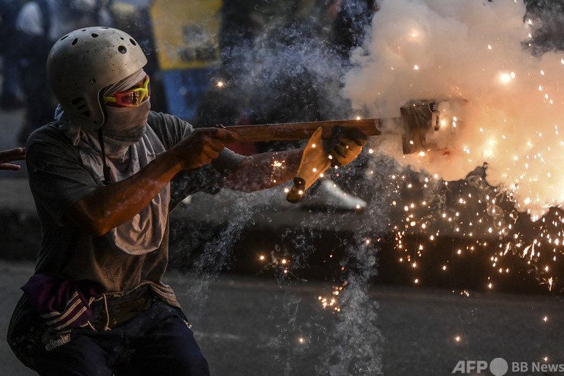 【6月1日 AFP】コロンビア・メデジン(Medellin)で行われたイバン・ドゥケ(Ivan Duque)大統領に対する抗議デモで、機動隊と衝突するデモ参加者。コロンビアではまん延する暴力と経済的苦境が悪化しており、ドゥケ政権に対する抗議行動がほぼ毎日行われている。(c)AFP