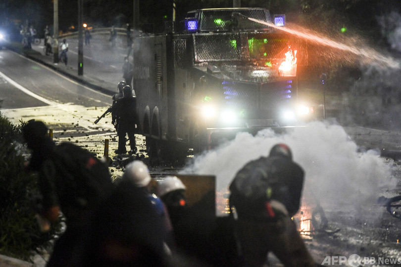 【6月1日 AFP】コロンビア・メデジン(Medellin)で行われたイバン・ドゥケ(Ivan Duque)大統領に対する抗議デモで、機動隊と衝突するデモ参加者。コロンビアではまん延する暴力と経済的苦境が悪化しており、ドゥケ政権に対する抗議行動がほぼ毎日行われている。(c)AFP
