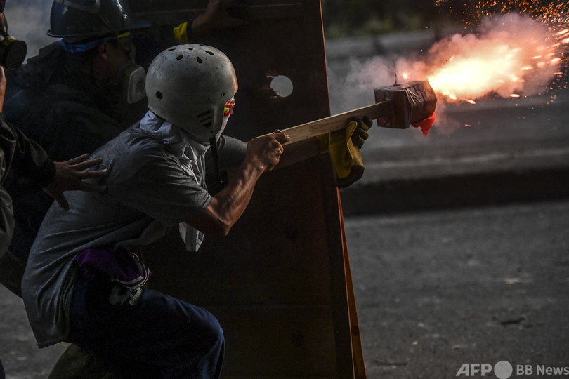【6月1日 AFP】コロンビア・メデジン(Medellin)で行われたイバン・ドゥケ(Ivan Duque)大統領に対する抗議デモで、機動隊と衝突するデモ参加者。コロンビアではまん延する暴力と経済的苦境が悪化しており、ドゥケ政権に対する抗議行動がほぼ毎日行われている。(c)AFP