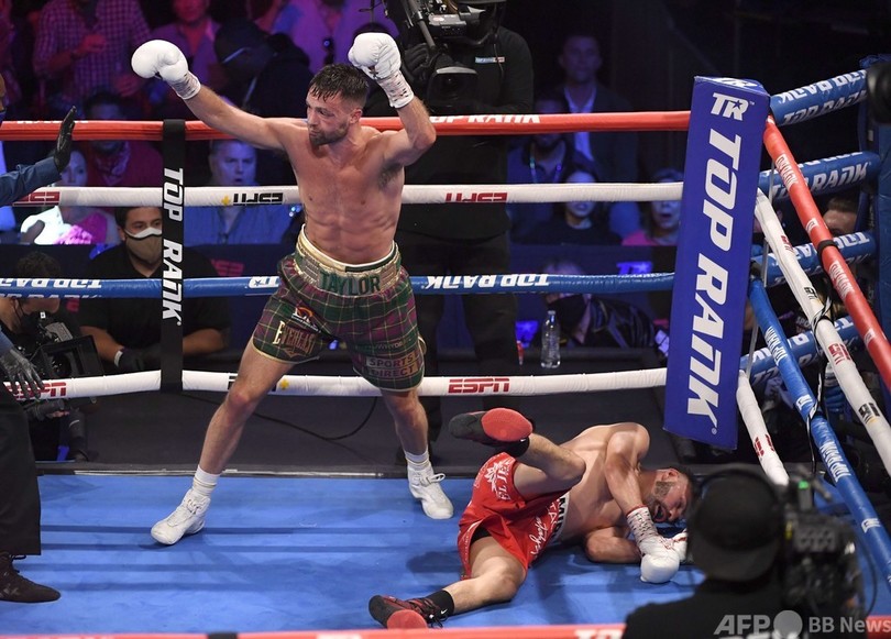 ともに五輪に出場したアマチュア出身で、ここまで無敗を維持していた王者同士の対戦は、絶え間なく攻撃を仕掛けて2回のダウンを奪ったテイラーが勝利を収め、四つのベルトを手に入れた。