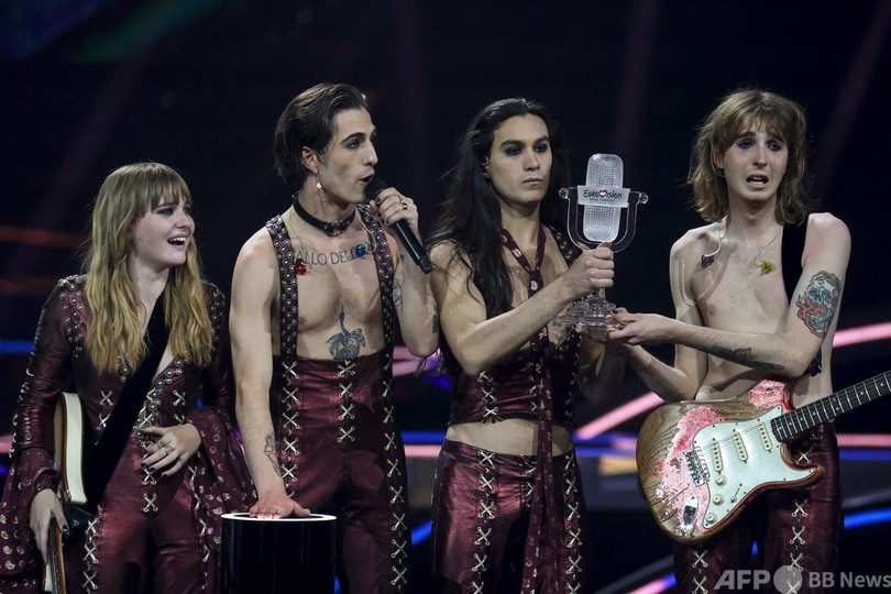 【5月23日 AFP】オランダ・ロッテルダム(Rotterdam)で開催された欧州国別対抗歌謡祭「ユーロビジョン・ソング・コンテスト(Eurovision Song Contest)」は22日、イタリアのロックバンド「マネスキン(Maneskin)」が優勝した。ユーロビジョンは昨年、新型コロナウイルスの影響により中止となっていたが、マネスキンは世界に希望のメッセージを伝える機会になったとして、今年開催したことを称賛した。