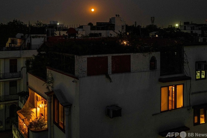 天文学者らによると、皆既月食とスーパームーンが重なるのは10年に1度。珍しい天体ショーを楽しもうと、各地で大勢が夜空を見上げた。(c)AFP