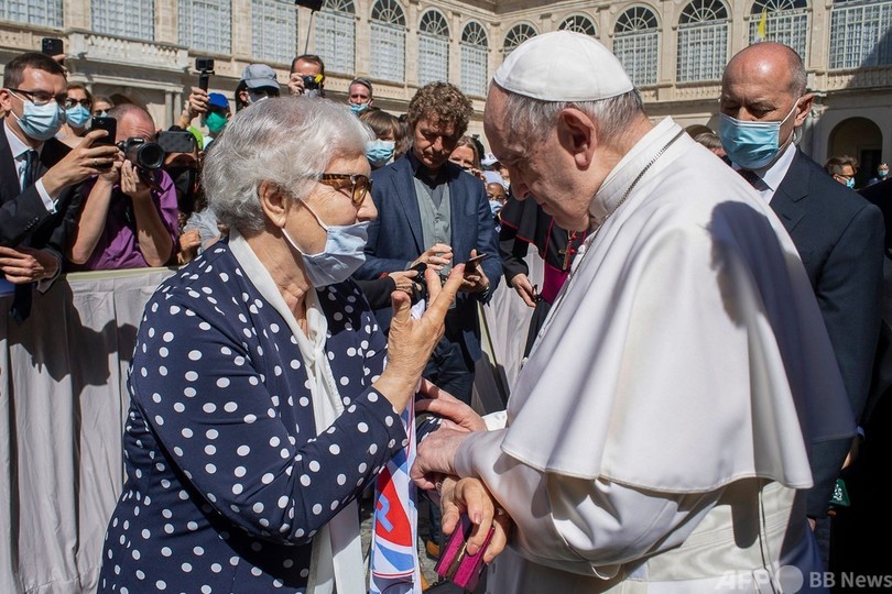 【5月27日 AFP】ローマ・カトリック教会のフランシスコ教皇(Pope Francis)は26日、バチカンを訪れたアウシュビッツ(Auschwitz)強制収容所の生存者の女性と会い、腕に残る囚人番号の入れ墨に口づけをした。