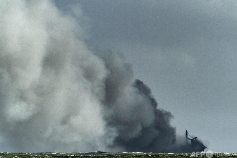 海洋環境保護局(MEPA)は、火災の原因は硝酸の漏出だとみている。乗員は5月11日から、漏出を把握していたという。(c)AFP/Amal JAYASINGHE