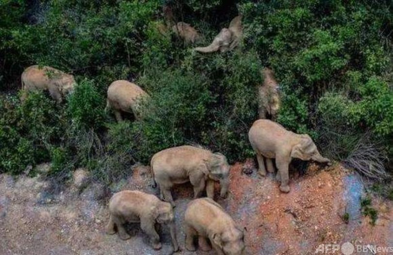 ゾウの群れは昨年3月にシーサンパンナの自然保護区から北上して普洱市(Puer、プーアル)に入り、1年余りとどまっていましたが、今年4月からまた北上を続けて500キロ近く移動しました。アジアゾウを研究する雲南大学(Yunnan University)の研究者は、「アジアゾウがこれほど長い距離を北上するのは中国では初めて」とみています。