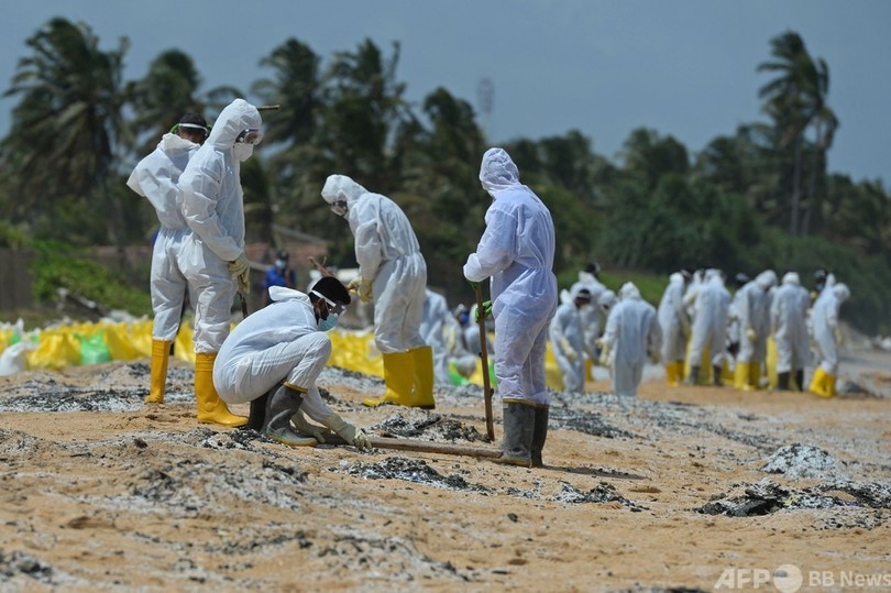 【6月1日 AFP】スリランカ沖で、シンガポール船籍のコンテナ船「エクスプレス・パール(MV X-Press Pearl)」が起こした火災は1日、ようやく鎮火した。スリランカ海軍が発表した。