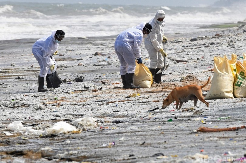 同船のコンテナから、膨大な量のプラスチック粒が流出して浜辺を覆いつくし、漁は禁止され、兵士数千人が出て回収作業を行った。スリランカ史上最悪の海洋環境災害となった。