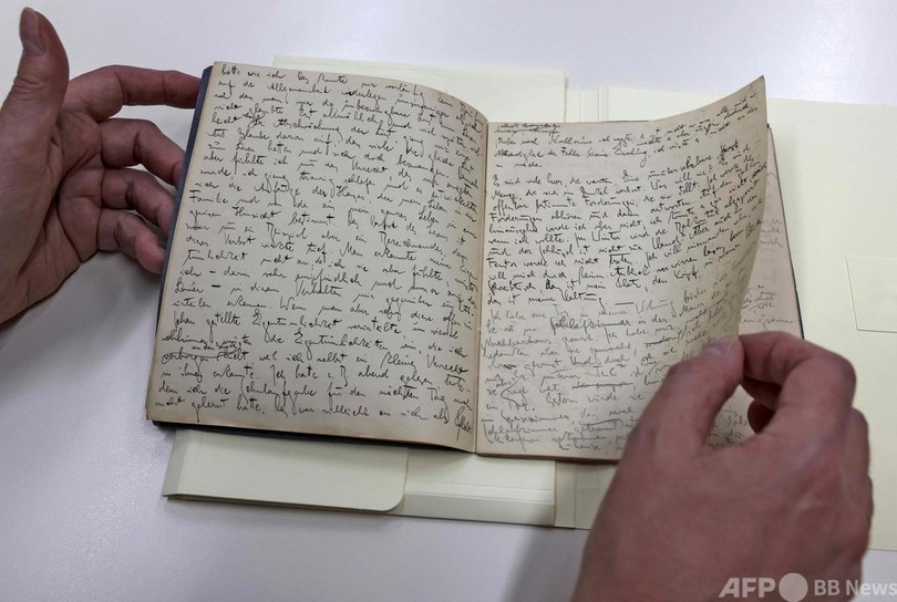 さらにリット氏は、カフカがヘブライ語で書いていた青いノートの記述に「非常に驚いた」と述べた。ノートにはいつもの「K」の署名があったという。1920年のある日、カフカは教師に対し、宿題に間違いがあっても怒らないでほしいと書いていた。「なぜなら、既に自分自身と先生の両方に対して自分は怒っているのだから」 (c)AFP