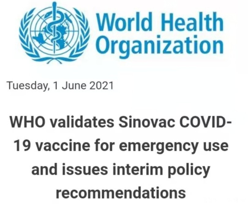 【6月2日 CGTN Japanese】世界保健機関(WHO)は現地時間1日、中国の科興控股生物技術(シノバック・バイオテック、Sinovac Biotech)が開発した新型コロナウイルスワクチンを緊急使用リストに盛り込んだと発表しました。
