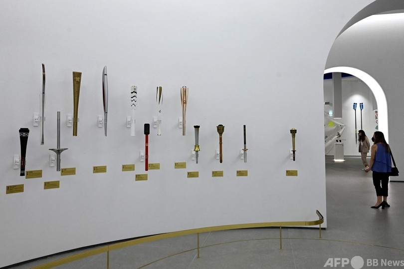 館内には、過去の大会の聖火リレーで使用されたトーチや開会式衣装、メダルといった五輪に関連する品々が多数、展示されている。特に聖火トーチは、1936年ベルリン大会以降のものがすべてそろっている。(c)AFP