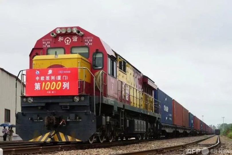 東アジアや東南アジアの貨物は海運によってアモイに運び、その後はアモイ発の「中欧班列」を利用することで、15日以内に中央アジアに、20日以内に欧州に到着します。従来は海運だけにたよって輸送したので約40日かかりましたが、「中欧班列」を利用することで、所要日数は20日以内に短縮されました。(c)CGTN Japanese/AFPBB News