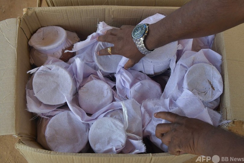 【6月4日 AFP】インド南部カルナタカ(Karnataka)州ベンガルール(旧バンガロール、Bangalore)郊外にある火葬場で、つぼ数十個が引き取り手もなく放置されている。白い布に包まれ、番号シールだけが目印となっていた。