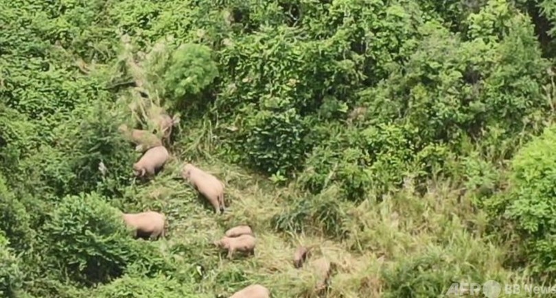ゾウの群れはもともと、ミャンマーとの国境に近い雲南省シーサンパンナ(Xishuangbanna)・タイ族自治州の国立自然保護区に生息していた。昨年春ごろに北進を始め、今年4月に15頭が北東400キロの雲南省玉渓市(Yuxi)に入った。近隣住民は避難し、警察官が出動。ゾウはさらに北上し、人口800万人を超える昆明市(Kunming)に数キロまで迫った。中国でアジアゾウは中国国家一級重点保護野生動物に指定されており、警察や役所はゾウを傷つけないようドローンで遠方から監視し、市街地に入らないようトラックで道をふさいでいる。