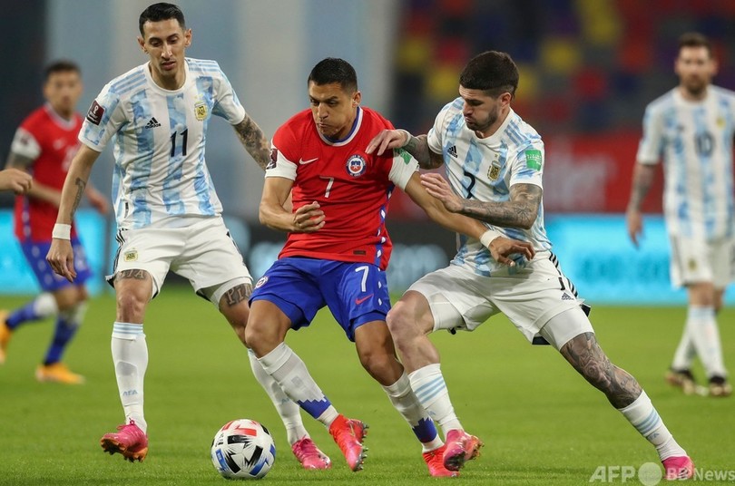【6月4日 AFP】2022年サッカーW杯カタール大会(2022 World Cup)の南米予選は3日、各地で第7節の試合が行われ、アルゼンチンはリオネル・メッシ(Lionel Messi)のPKで先制するもチリと1-1で引き分け、首位浮上のチャンスを逃した。