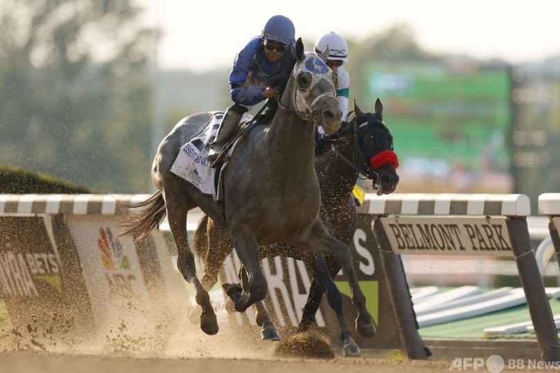 【6月6日 AFP】米国競馬のG1レース、第153回ベルモント・ステークス(153rd Belmont Stakes、3歳、ダート約2400メートル)が5日、ニューヨーク州エルモント(Elmont)のベルモントパーク競馬場(Belmont Park)で開催され、本命のルイス・サエス(Luis Saez)騎手騎乗のエッセンシャルクオリティ(Essential Quality)が、先行するホットロッドチャーリー(Hot Rod Charlie)を差し切って優勝した。