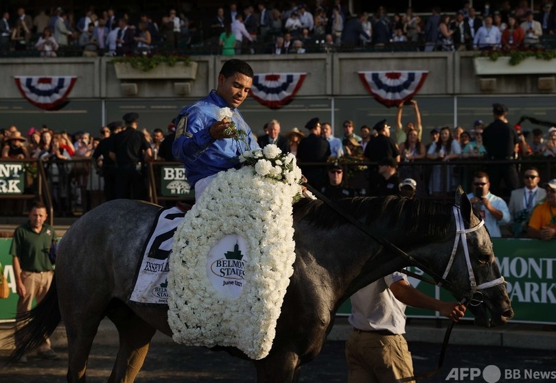 【6月6日 AFP】米国競馬のG1レース、第153回ベルモント・ステークス(153rd Belmont Stakes、3歳、ダート約2400メートル)が5日、ニューヨーク州エルモント(Elmont)のベルモントパーク競馬場(Belmont Park)で開催され、本命のルイス・サエス(Luis Saez)騎手騎乗のエッセンシャルクオリティ(Essential Quality)が、先行するホットロッドチャーリー(Hot Rod Charlie)を差し切って優勝した。