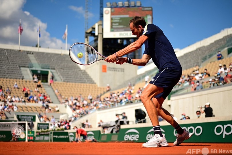 今大会まで、全仏オープンで1勝もしたことがなかったメドベージェフは、第12シードのパブロ・カレーニョ・ブスタ(Pablo Carreno-Busta、スペイン)に6-3、6-2、7-5で勝利した第5シードのステファノス・チチパス(Stefanos Tsitsipas、ギリシャ)と準々決勝で対戦する。(c)AFP