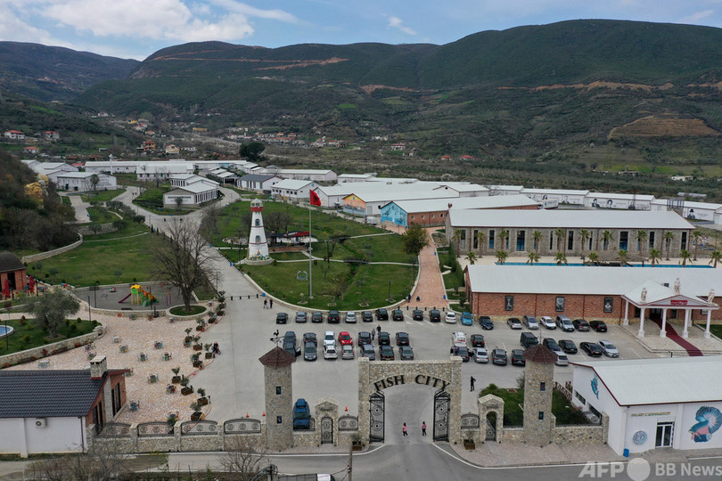 アルバニアの首都ティラナから南へ60キロ。ラビノフシュ(Labinot-Fushe)のなだらかな丘陵地に広がっているのは、「フィッシュ・シティー(Fish City)」と呼ばれる複合施設だ。