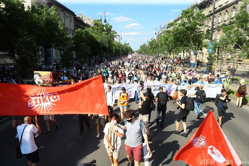 【6月7日 AFP】ハンガリーの首都ブダペストで5日、中国の名門大学、復旦大学(Fudan University)のキャンパス建設計画に反対するデモ行進が行われ、AFPのカメラマンによると、約1万人が参加した。