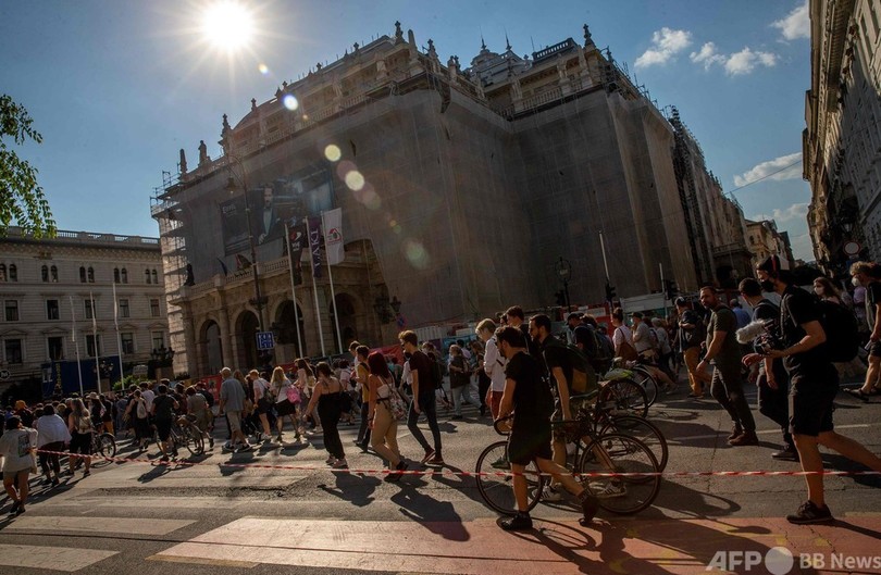 【6月7日 AFP】ハンガリーの首都ブダペストで5日、中国の名門大学、復旦大学(Fudan University)のキャンパス建設計画に反対するデモ行進が行われ、AFPのカメラマンによると、約1万人が参加した。