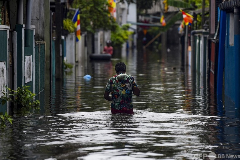 専門家らは、スリランカの長雨は季節性だが、地球温暖化の影響で洪水の頻度が増えていると警告する。スリランカは48か国でつくる気候脆弱(ぜいじゃく)性フォーラム(Climate Vulnerable Forum)に加盟している。(c)AFP